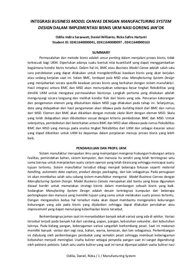 Integrasi Business Model Canvas Dengan Desain Sistem Manuafaktur Dala