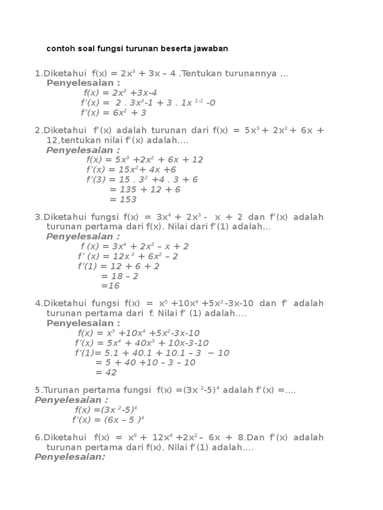 Contoh Soal Fungsi Turunan Beserta Jawaban