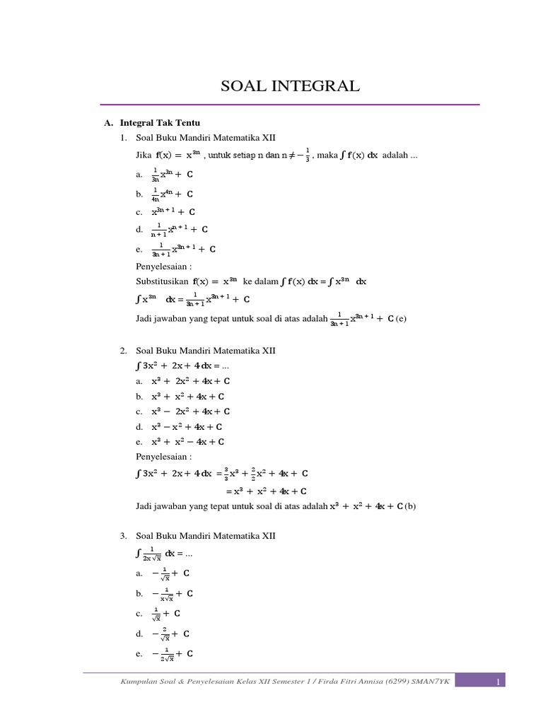 Soal Integral Tak Tentu Fungsi Aljabar Doc Galeri Siswa