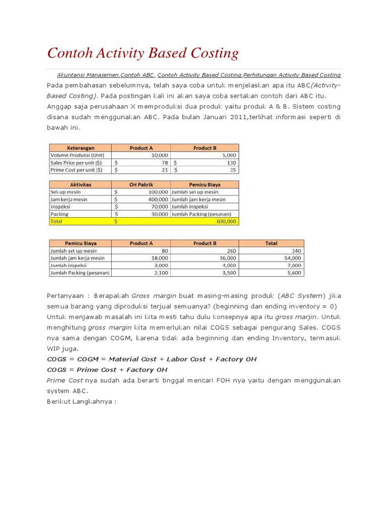 Contoh Soal Activity Based Costing Dan Jawabannya Bali Teacher