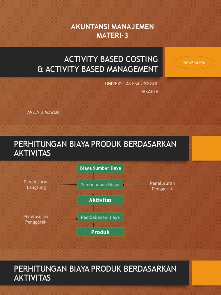 Materi 3 Activity Based Management Akuntansi Manajemen Materi 3 Activity Based Costing Activity Based Management Universitas Esa Unggul Jakarta Hansen Course Hero