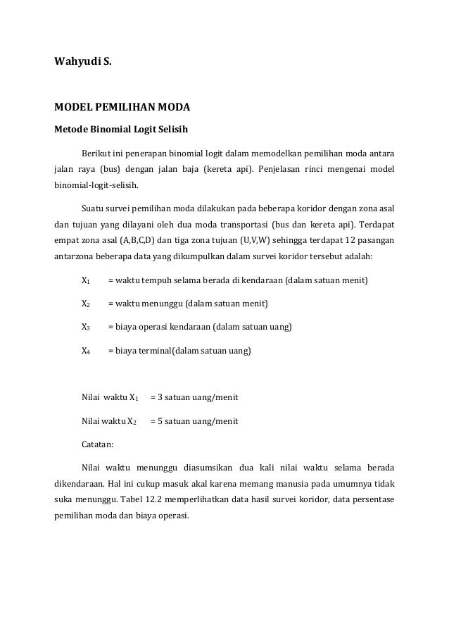 12 Teori dan Pustaka Khisty and. Pasar Hewan Menggunakan Model Logit Biner mempunyai tujuan mengetahui karakteristik pemilih moda dan karakteristik perjalanan serta permodelan logit biner di pasar tersebut. 06510028 jurusan matematika fakultas sain dan teknologi universitas islam negeri maulana malik ibrahim.