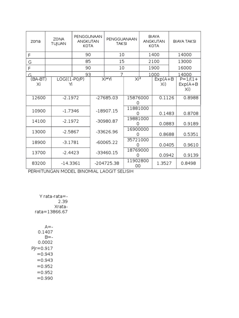 Contoh Perhitungan Binomial Logit