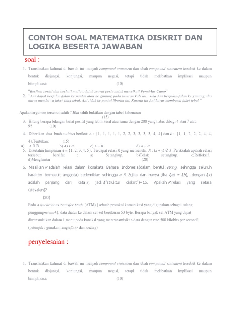 Contoh Dan Jawabannya Uts Matematika Diskrit