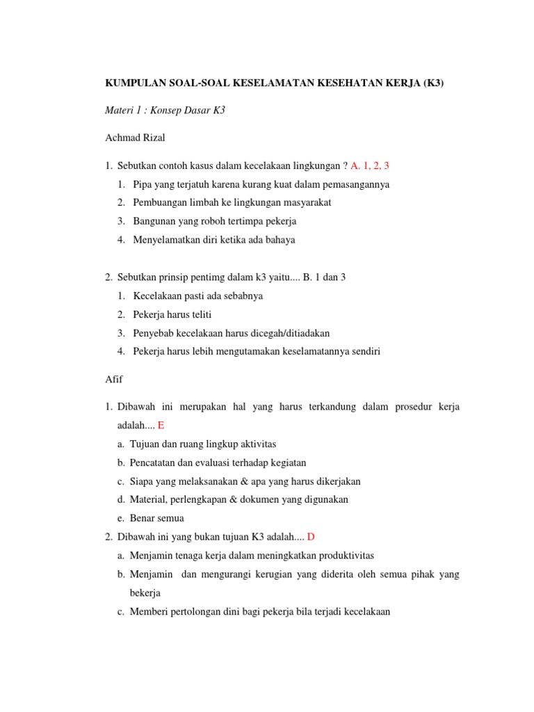 Kunci jawabannya klik disini. Kesehatan dan Keselamatan Kerja K3 Oleh Guru Ekonomi Diposting pada Agustus 11 2020. Inilah contoh soal kasus k3 pdf dan ulasan menarik lainnya seputar kesehatan dan keselamatan kerja K3 ditinjau dari semua aspek ilmu K3 di Indonesia.