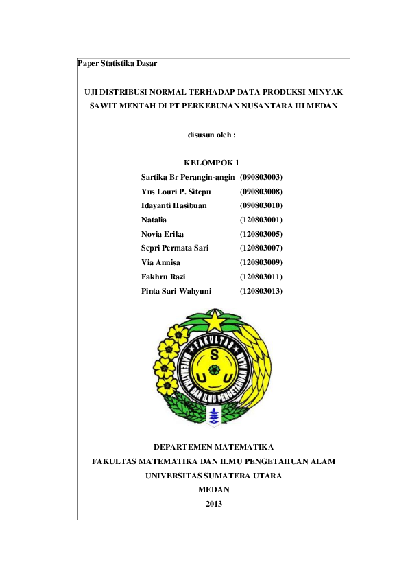 Doc Paper Uji Distribusi Normal Terhadap Data Produksi Minyak Sawit Mentah Di Pt Pn Iii Medan Nata Zhou Academia Edu