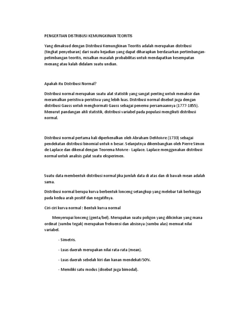 Pengertian Distribusi Kemungkinan Teoritis