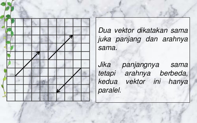 Sedangkan secara aljabar dua buah vektor dikatakan sejajar jika kedua vektor merupakan kelipatan. Inti dari penjumlahan vektor yaitu untuk mencari dari suatu vektor yang memiliki berbagai jenis komponen. Karena vektor - vektor yang terbentuk segaris maka otomatis semua vektor yang terbentuk adalah sejajar sehingga langkah selanjutnya bisa kita terapkan konsep vektor - vektor yang sejajar seperti 26112013 Menurut saya pertanyaan ini melanggar.
