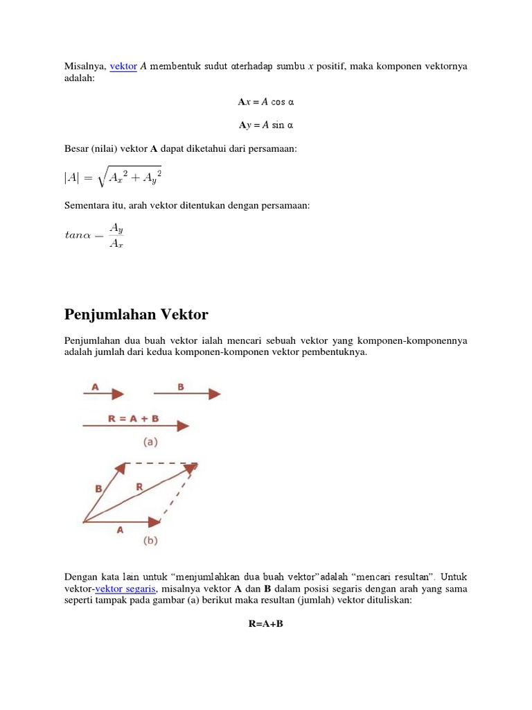 Materi mencangkup panjang vektor jarak sudut anatara dua vektor titik yang segaris sebidang dan proyeksi vektor ortogonal dan skalar dan sebagainya. Vektor Segaris Untuk vektor segaris resultannya antara lain ialah. Komponen vektor adalah vektor yang bekerja menuyusun suatu vektor hasil resultan vektor.