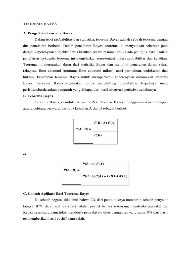 Contoh Soal Teorema Bayes Dan Penyelesaiannya Pdf Dapatkan Contoh