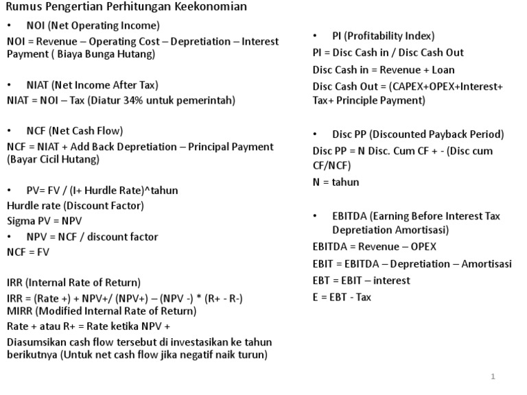Rumus Perhitungan Keekonomian Net Present Value Internal Rate Of Return