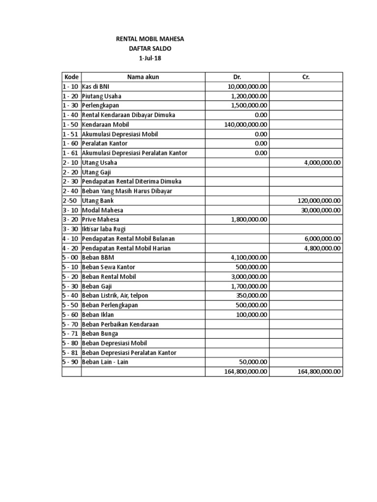 Contoh Soal Akuntansi Perusahaan Jasa Rental Mobil