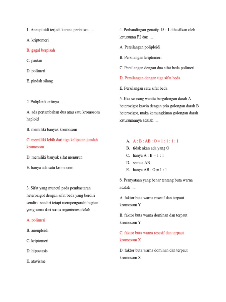 Soal Dan Jawaban Pilihan Ganda Kunci Jawaban Nomor 1 Sampai 40 Uas Pas Biologi Sma Kelas 12 Tribun Manado