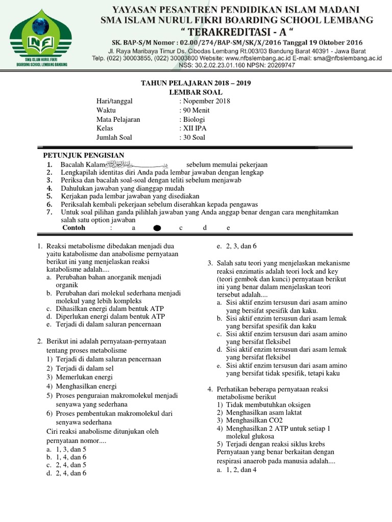 Contoh Soal Ujian Akhir Sekolah Biologi Pilihan Ganda Dan Jawaban