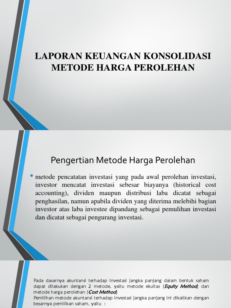 Laporan Keuangan Konsolidasi Cost Method Akuntansi Investasi Jangka