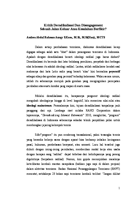 Pdf Kritik Terhadap Deradikalisasi Dan Disengagement Andrea Azzqy Academia Edu