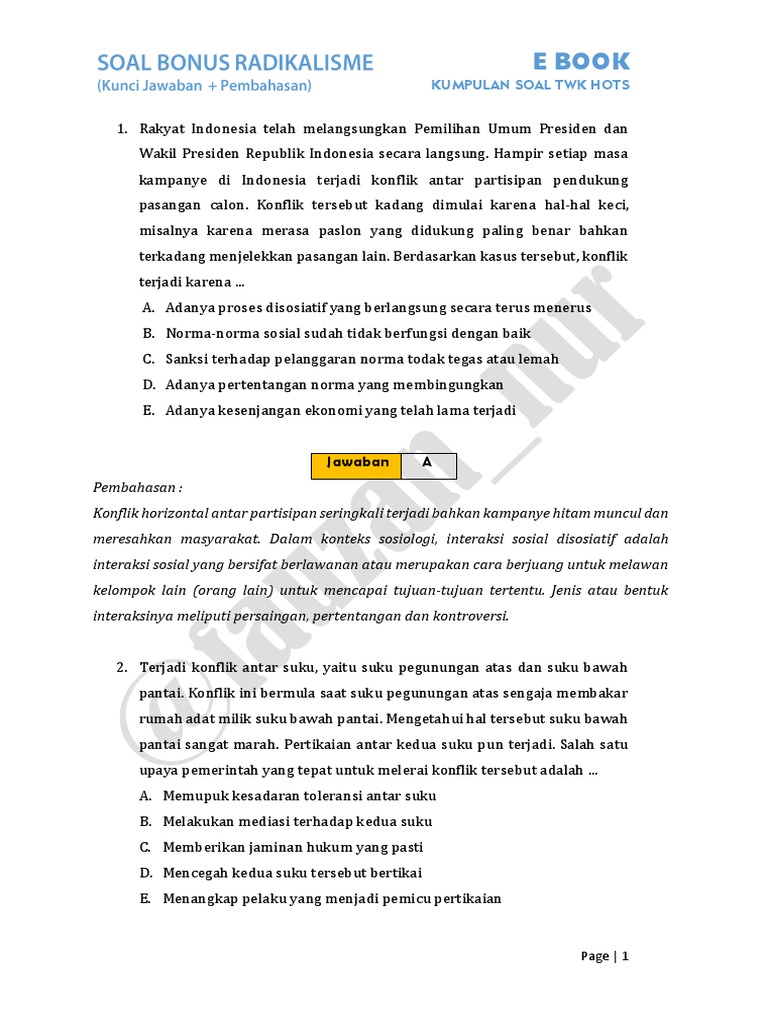 Kunci Soal Bonus Radikalisme Kumpulan Soal Twk Hots Fauzan Nur
