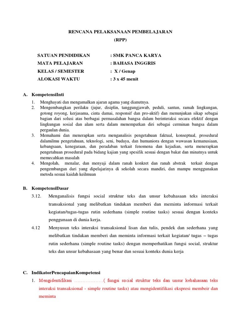 Rpp Bahasa Inggris Kelas Xi Smk Simple Routine Jurnal Artefak