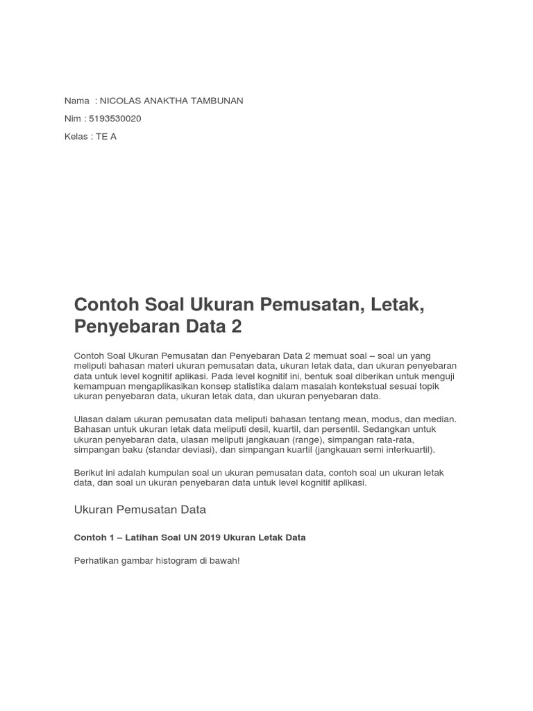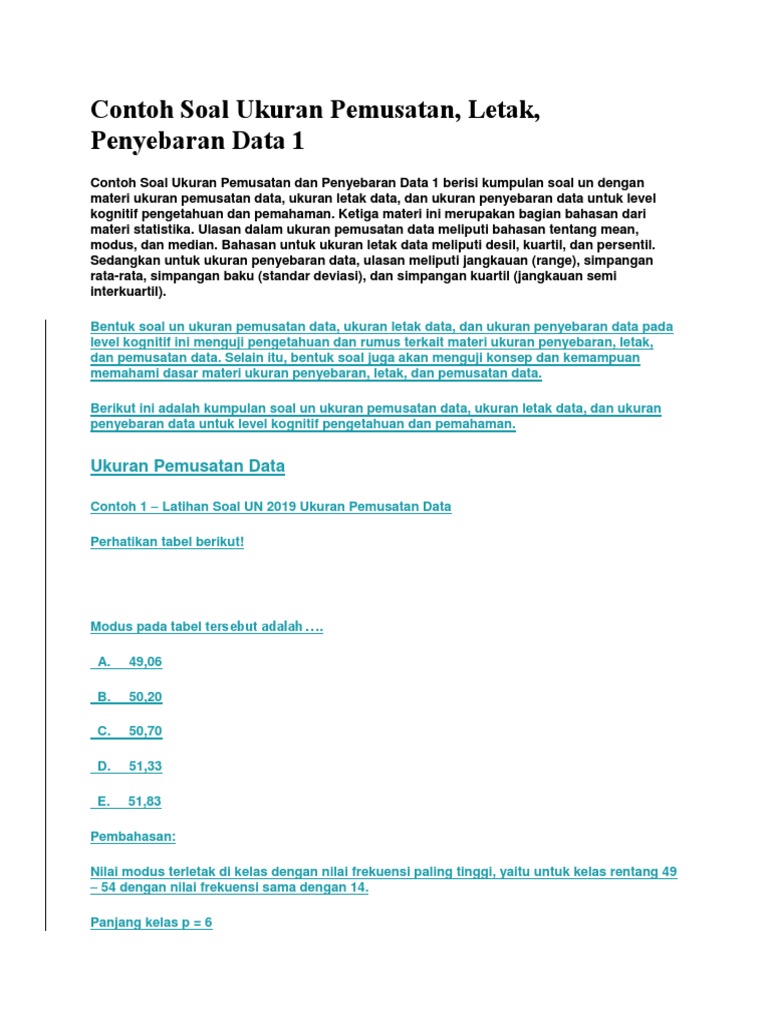 Contoh Soal Ukuran Pemusatan Dan Penyebaran Data