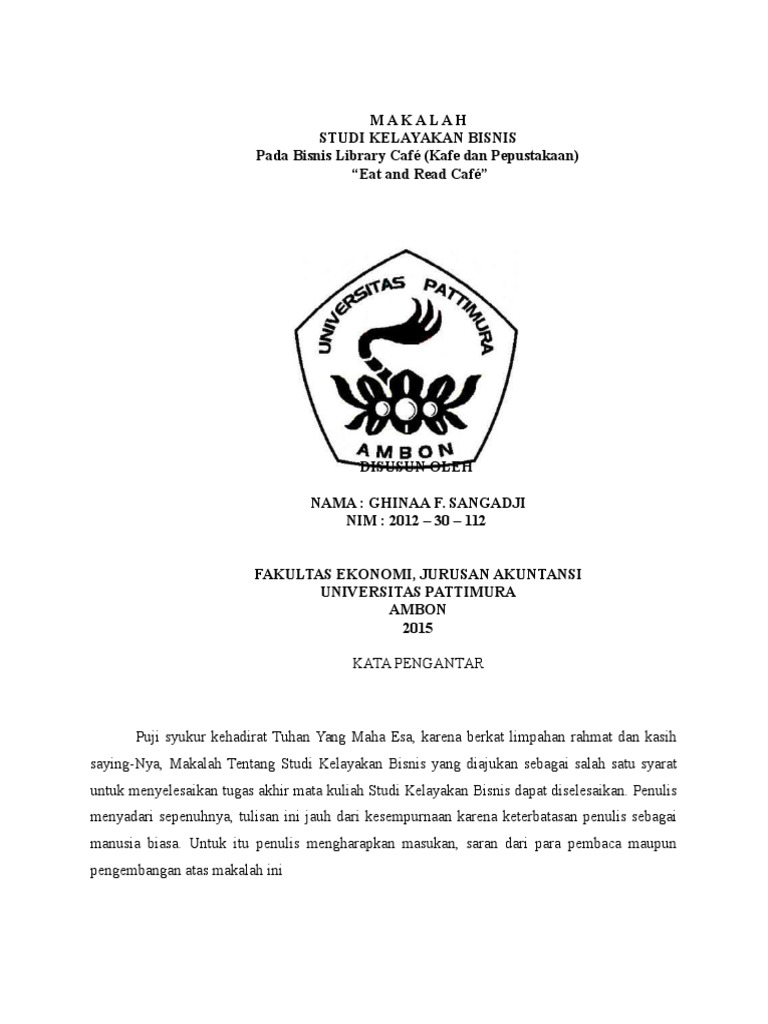 Contoh Makalah Studi Kelayakan Bisnis Kedai Kopi. Setelah berdomisili di Yogyakarta belum mendapatkan pekerjaan dan sumber nafkah maka menemukan ide untuk membuat usaha. Iwan asal Pemalang merantau ke Yogyakarta.