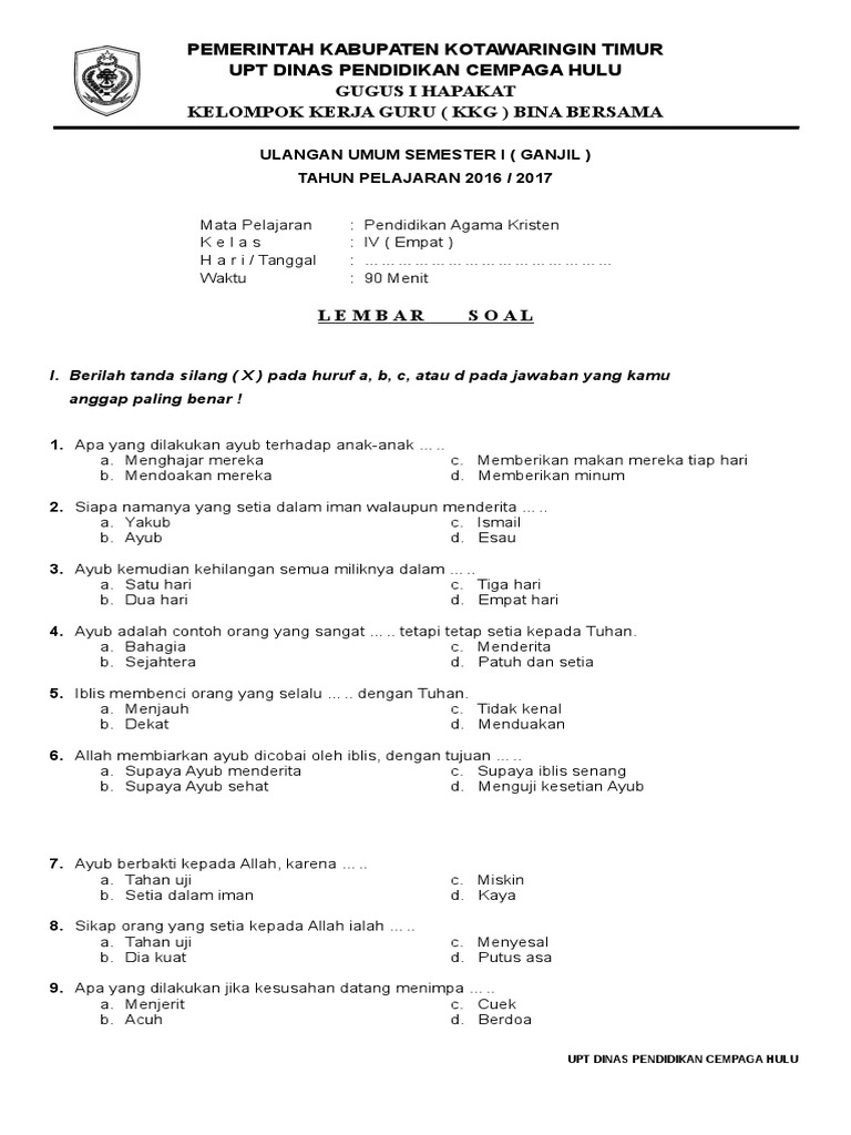 Download contoh soal agama kristen kelas xi semester ganjil beserta jawabannya. Demi menunjang kebutuhan soal.