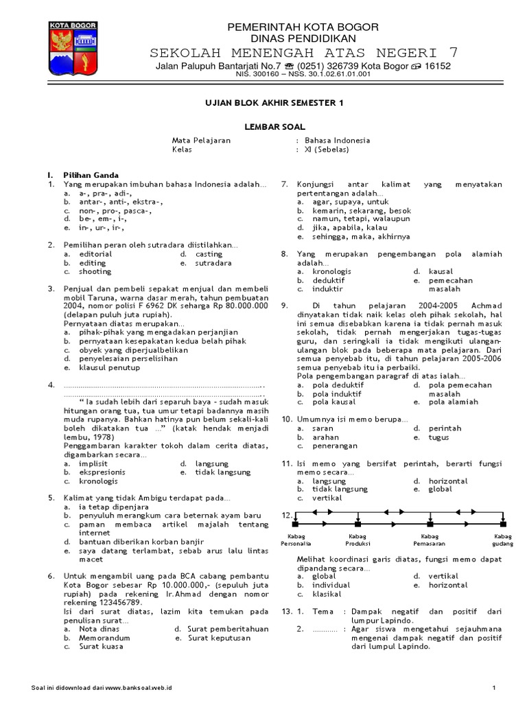 Www Banksoal Web Id Soal Ujian Semester I Sma Kelas Xi Bahasa Indonesia