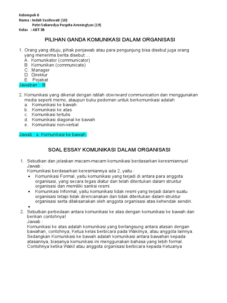 Soal Pilihan Ganda Komunikasi Dalam Organisasi