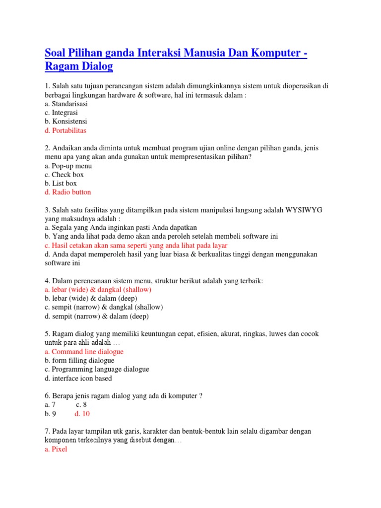Pdf Soal Pilihan Ganda Dan Jawaban Interaksi Manusia Dan Komputer Sistem Komputer Compress Pdf Soal Pilihan Ganda Dan Jawaban Interaksi Manusia Course Hero