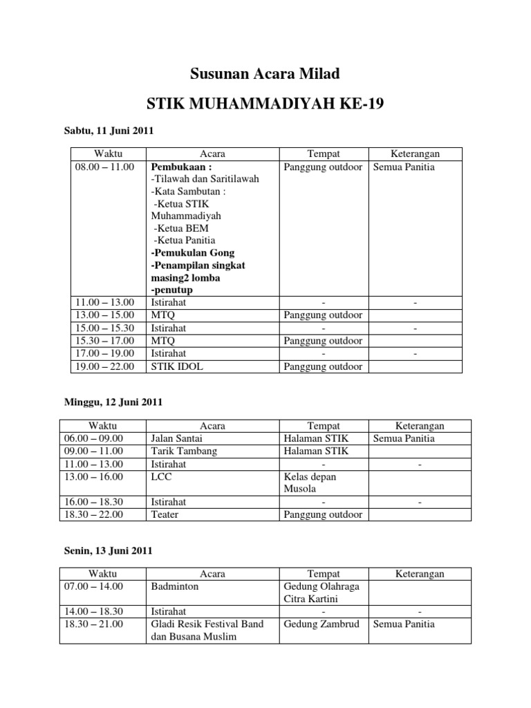Proposal kegiatan festival band pelajar tingkat smamasmk se- kota sungai penuh dan kabupaten kerinci 2017 sma negeri i sunga. Sementara itu tantangan yang dihadapi oleh generasi muda dalam mewujudkan kesejahteraan sosial ditengah masyarakat semakin. Susunan Acara NO HARITANGGAL JAM KEGIATAN TEMPAT PELAKSANA 1 Diskopdagprin Lovina BINARIA BEACH STAGE HARI PERTAMA Sabtu 10 September 2016 0630 - 0730 0800 - 2100 1000 - selesai 1000 2100 Lovina 1500 -1600 Bersih-bersih Sapta pesona Pameran Kerajinan Seminar Pembangunan Pariwisata Berbasis Budaya di Undiksha Singaraja.